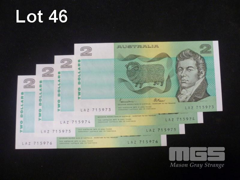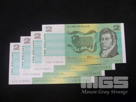 1985 4 x $2.00 NOTES MIXED PREFIX AND GRADES JOHNSTON FRAZER