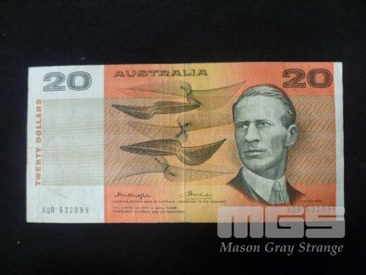 AUSTRALIA, $20 PAPER BANKNOTE, KNIGHT/WHEELER, XQR 632099