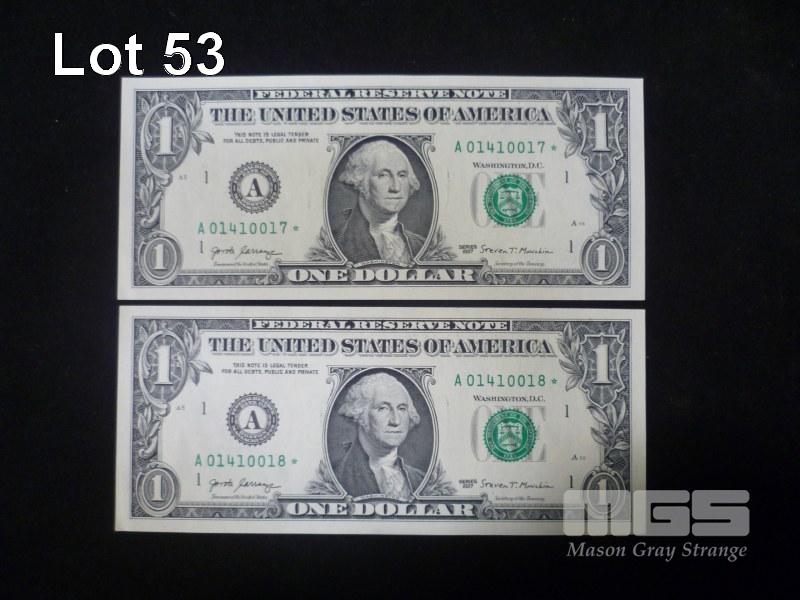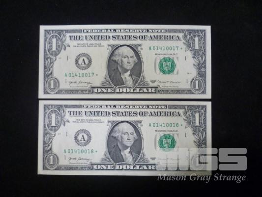 2007 2 x 1 USA DOLLAR STAR NOTES CONSECUTIVE UNC