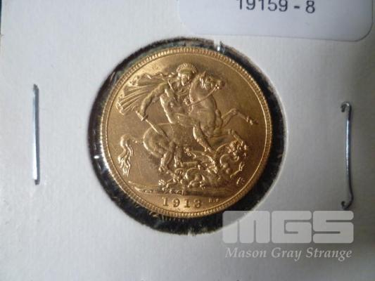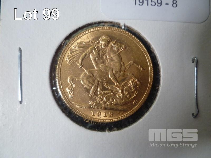 1913 GOLD SOVEREIGN, GEORGE V, 22 KARAT GOLD, FINE WEIGHT 7.322 GRAMS, P MINT MARK