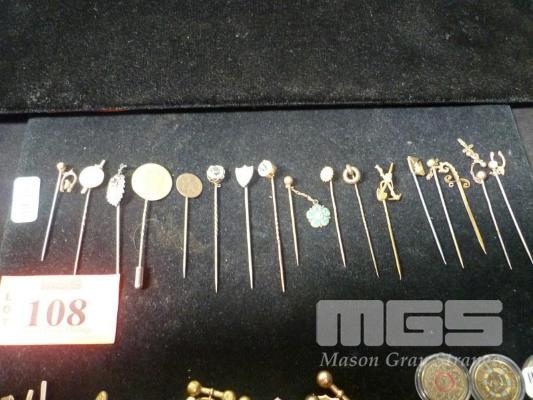 17 x ASSORTED HAIR PINS, SOME WITH GOLD & SILVER TOPS