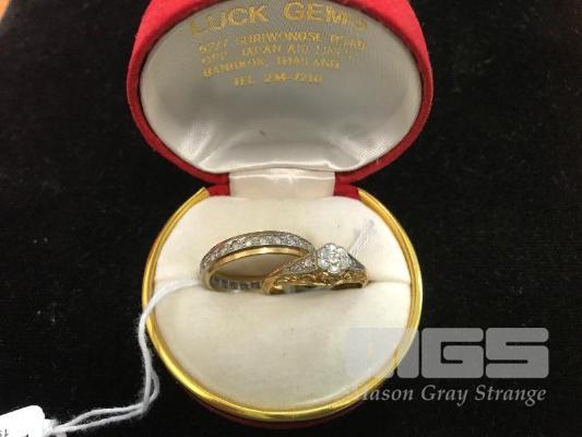 2 X GOLD RINGS MARKED 18CT, 1 X SET WITH DIAMOND SIZE 6, 1 X DIAMOND CHIPS SIZE 8 (US) 6.2 GRAMS TOTAL