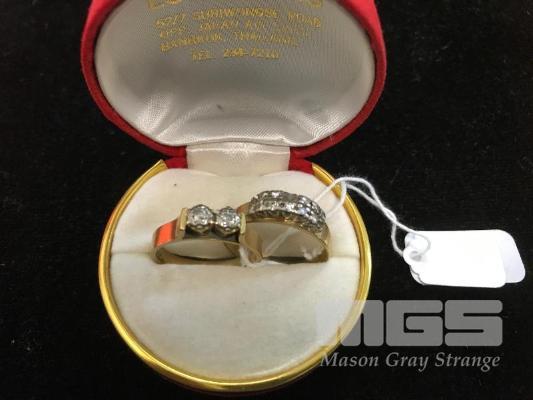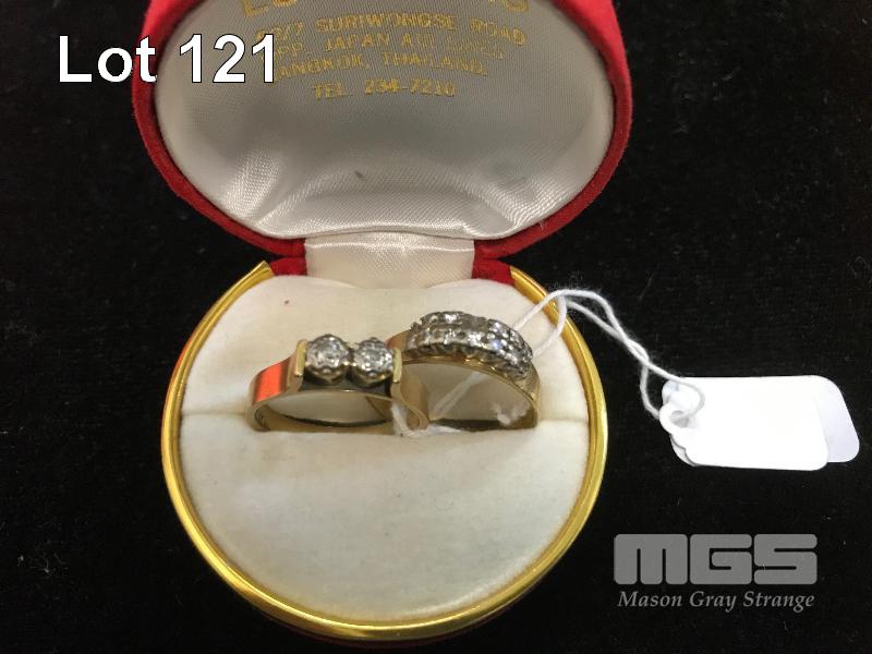 2 X GOLD RINGS MARKED 18CT, 1 X SET WITH DIAMONDS SIZE 8.5, 1 X DIAMOND CHIPS SIZE 10 (US) 8.8 GRAMS TOTAL