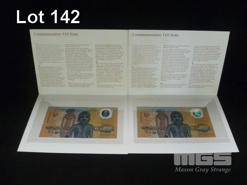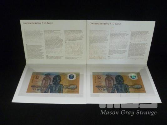 1988 2 x $10.00 NOTE COMMEMORATIVE CONSECUTIVE IN FOLDER UNC