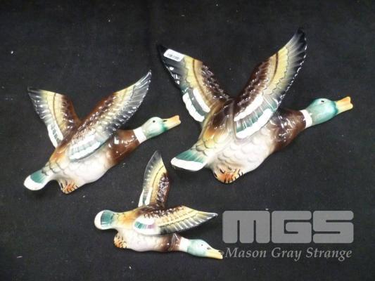 3 x GRADUATING FLYING DUCKS (SMALL DUCK SIGNS OF REPAIR)