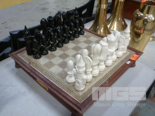 RESIN CHESS BOARD WITH GLAZED CERAMIC CHESS PIECES