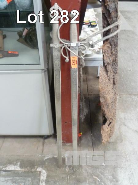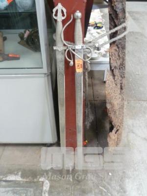 2 X ORNAMENTAL, METAL SWORDS, SPAIN, (1 x HANDLE ALL FAULTS)