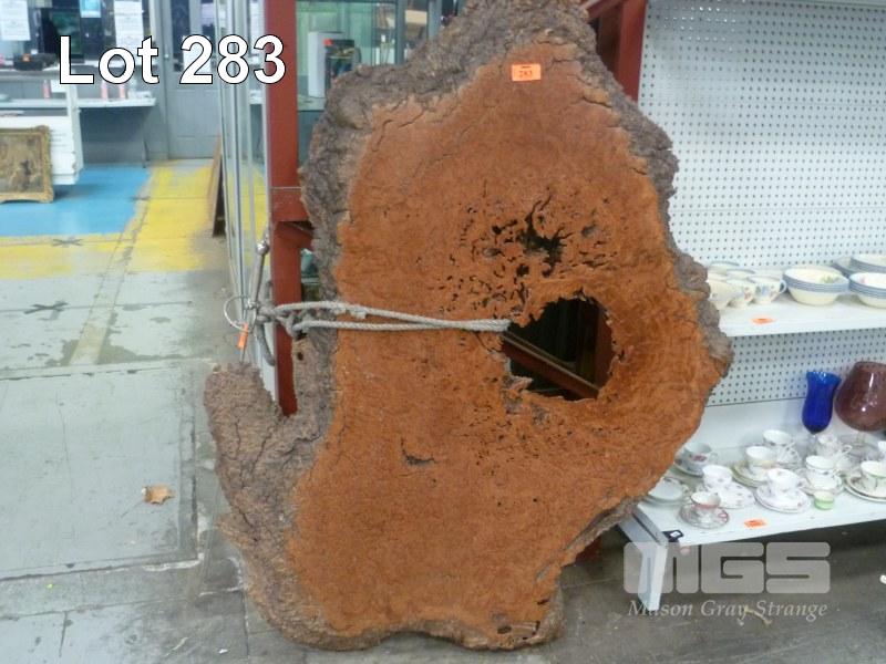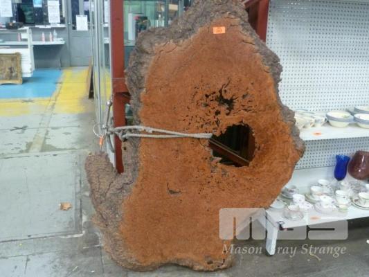LARGE BURR CROSS CUT SLAB CENTRAL HOLE TO FRONT & MULTIPLE CAVITIES TO BACK, SUIT RESIN FILLING ART 130CM W X 165CM H
