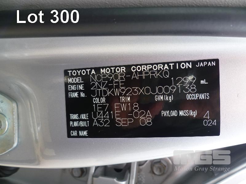 2008 TOYOTA YARIS HATCH REG: XUA902 (SA) (EXPIRED) VIN: JTDKW923X0J009138 ENG: 2NZ2531490 ODO: 98358 1.3 4 CYLINDER, 4 SPEED AUTO, PETROL, SILVER, 4 DOORS, 5 SEAT, ABS, AIR BAG, AIR CON, CD PLAYER, CENTRAL LOCKING, IMMOBILISER, POWER STEERING, POWER WINDOWS, SPARE WHEEL (NO PAPERS, WITH 2 KEY/S, WITH OWNER'S MANUAL, WITH SERVICE BOOKS)