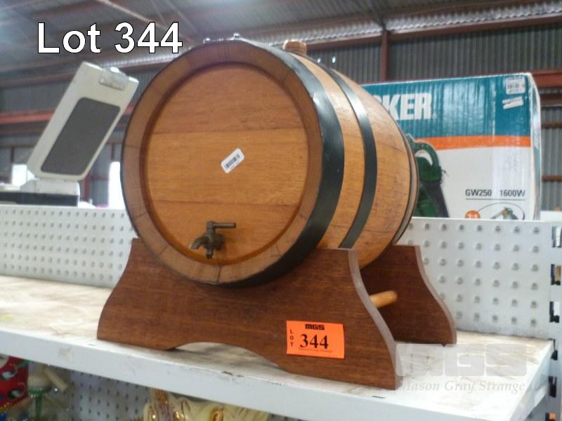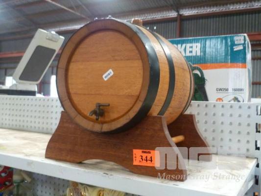 OAK PORT BARREL WITH BRASS TAP & STAND