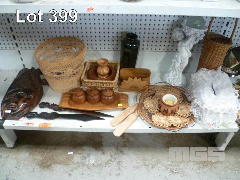 ASSORTED TREEN, WICKER BASKETS, ETC