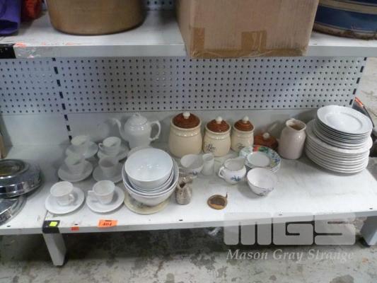 ASSORTED DINNERWARE, KITCHEN CANISTERS, ETC
