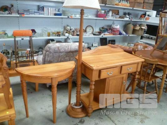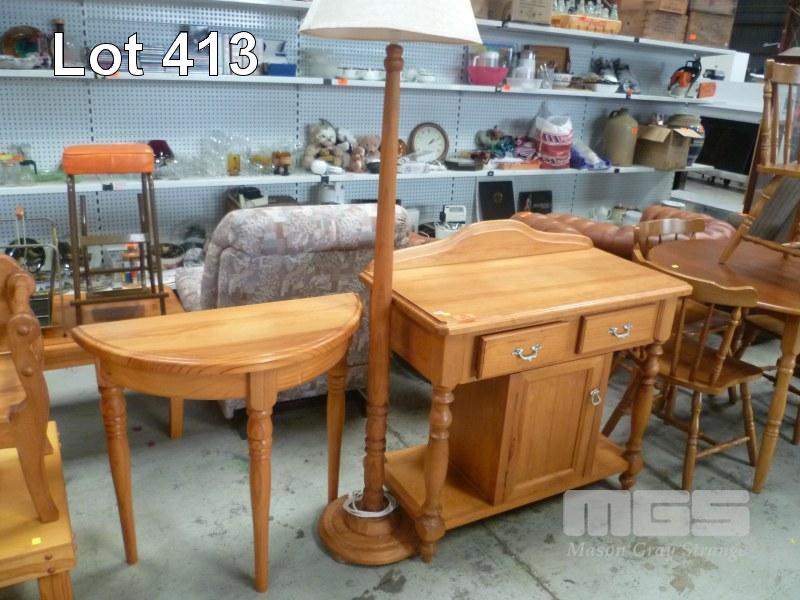 HALF ROUND PINE HALL TABLE, PINE STANDARD LAMP & PINE HALL STAND
