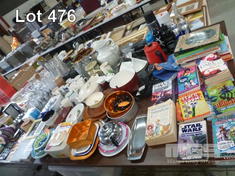 ASSORTED HOMEWARES, GLASSWARE, BOOKS, KITCHENWARE, ETC, 1 x TABLE