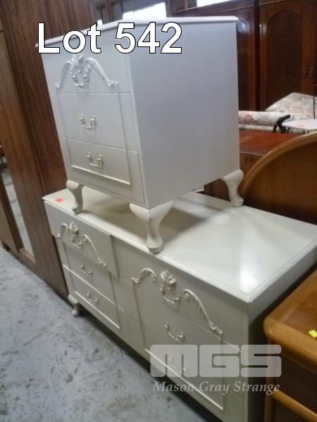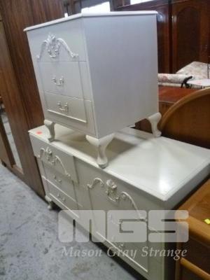 WHITE PAINTED TIMBER , LOWLINE CHEST OF 6 DRAWERS WITH MATCHING BEDSIDE CABINET