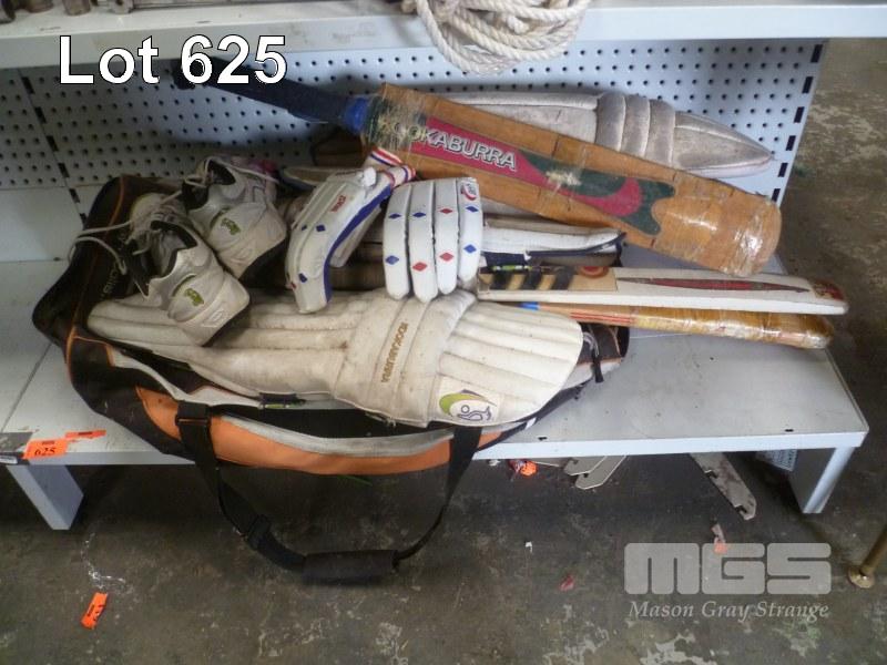 ASSORTED CRICKET GEAR INC 3 x BATS, PADS & BAG
