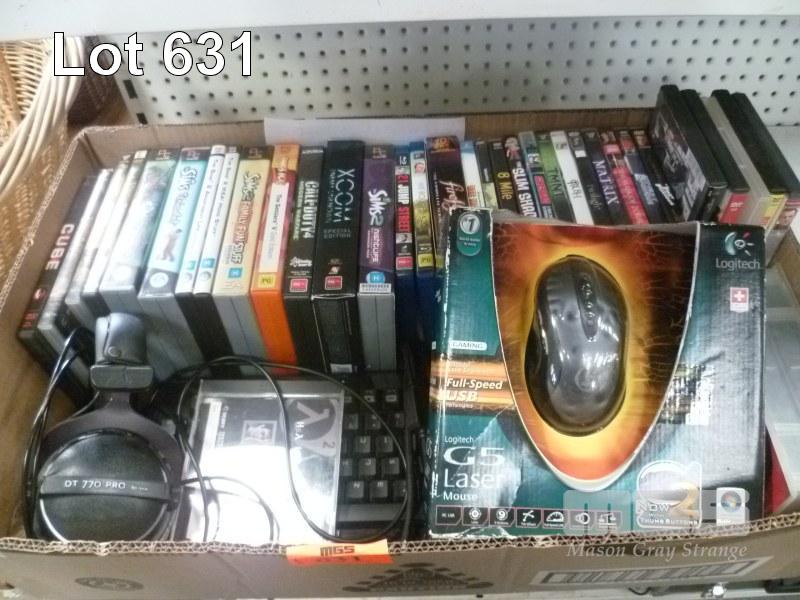 ASSORTED DVDS', PC GAMES, KEYBOARD, HEADPHONES, ETC