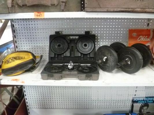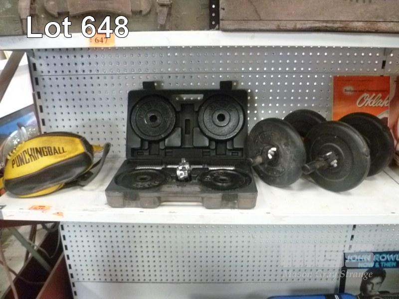 DUMB BELL SET IN BLACK CASE WITH EXTRA DUMP BELLS & SPEED BALL