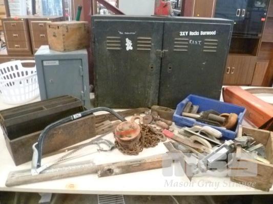 HEAVY DUTY WORKSHOP CABINET, SAFE (NO KEY) & TOOLS