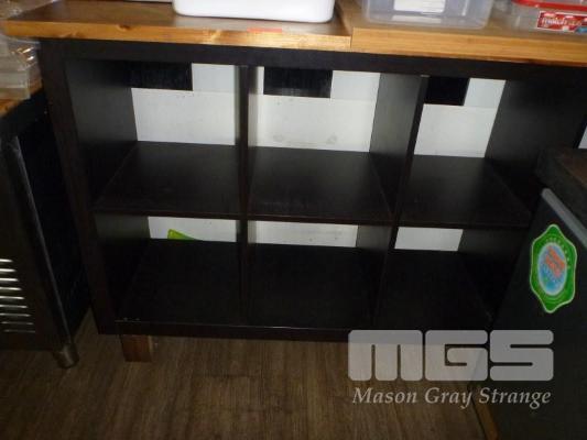 8 CUBE SHELF UNIT, BLACK, WITH TIMBER TOP