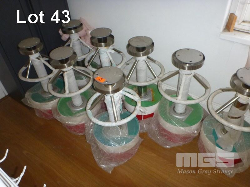 8 x FLOOR MOUNT STOOLS, RED/WHITE PVC, STAINLESS STEEL FRAME, (UPSTAIRS)