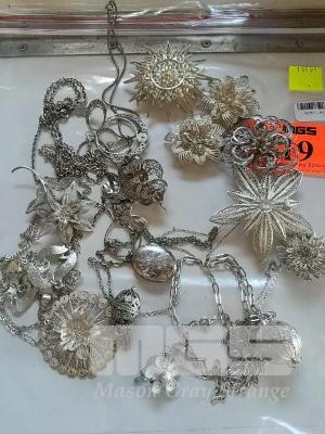 10 X SILVER NECKLACES & PENDANTS, 6 X BROOCHES