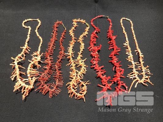 5 X GENUINE CORAL NECKLACES, 3 X ORANGE 2 X RED