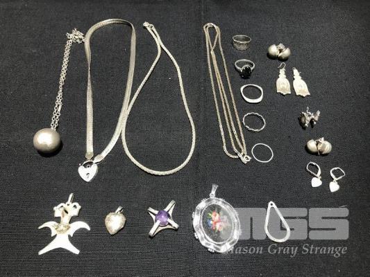 20 X PIECES OF SILVER JEWELLERY, 5 X NECKLACES, 5 X RINGS, 5 X PAIRS OF EARRINGS, 5 X PENDANTS