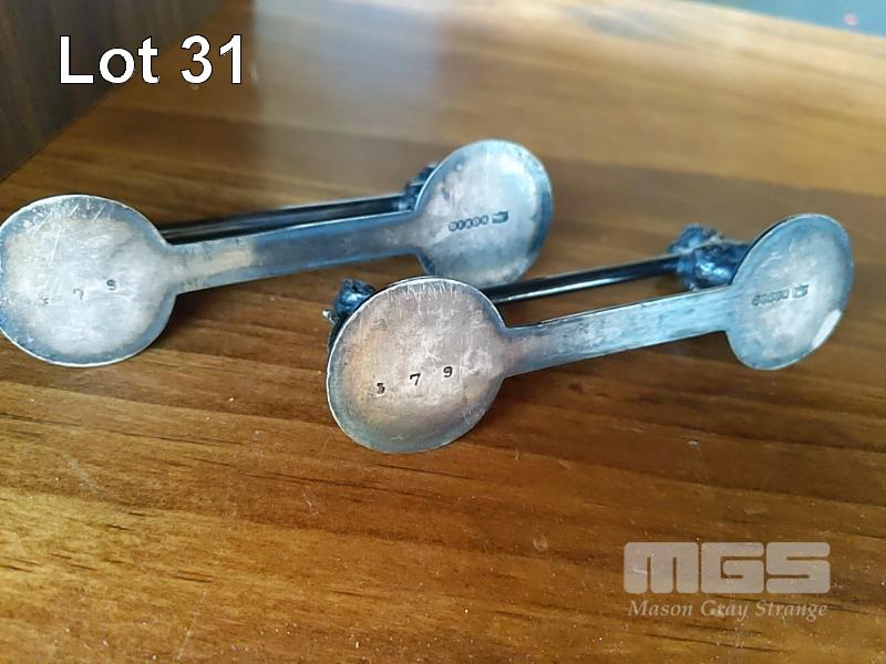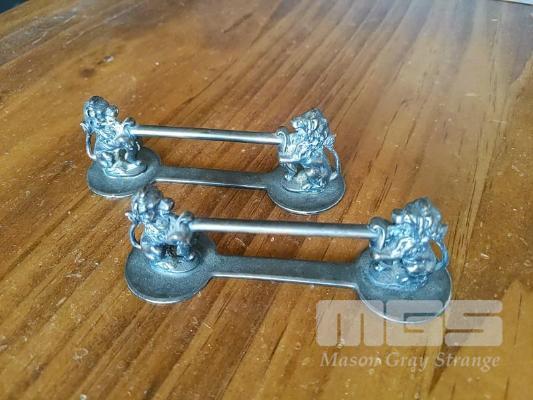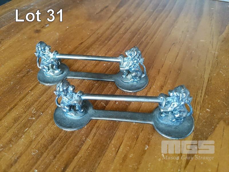 PAIR OF STERLING SILVER CARVER RESTS. LIONS WITH BAR. HALLMARK: TRUMPET AND BANNER
