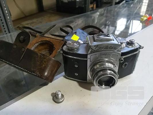 VINTAGE "EXAKTA JHAGEE" CAMERA WITH LEATHER CASE & STRAP.