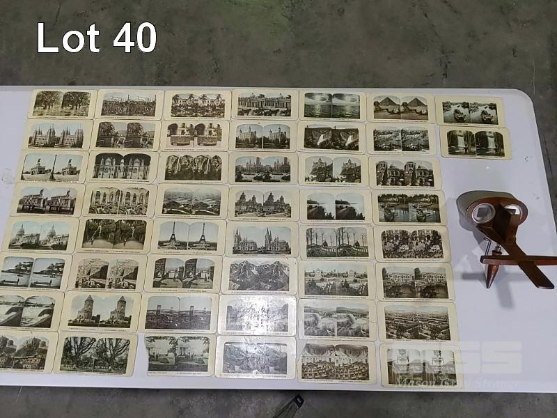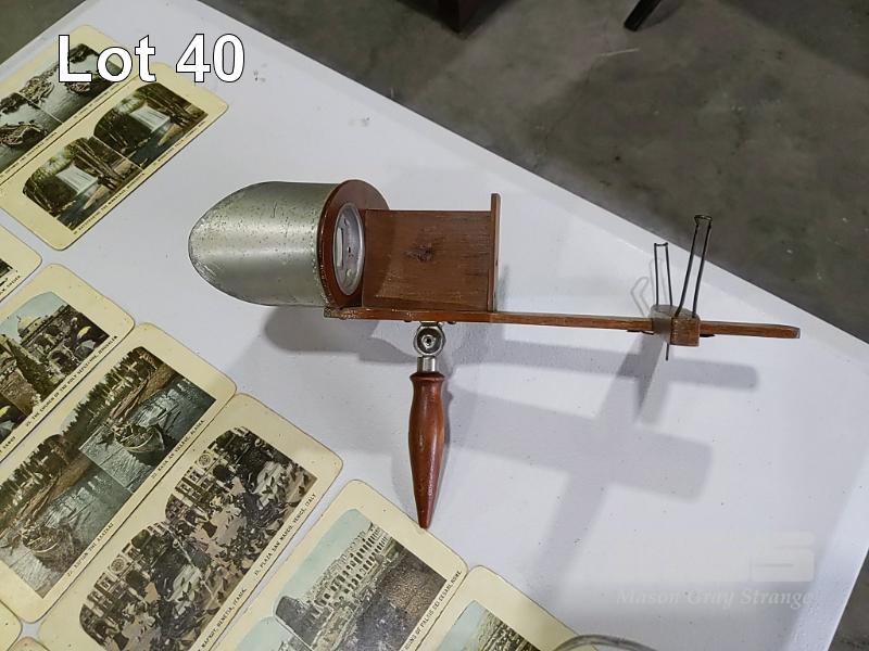 ANTIQUE WOODEN STEREO VIEWER AND 50 x CARDS