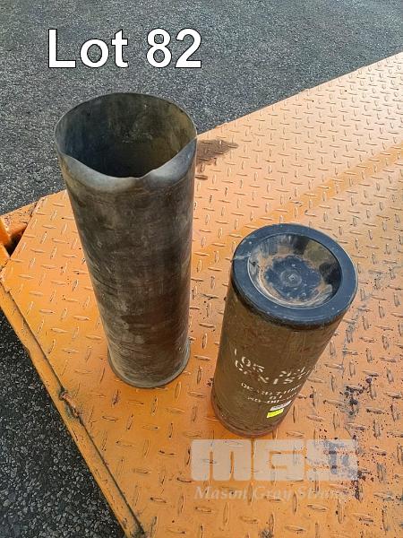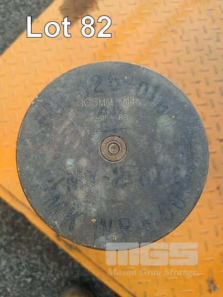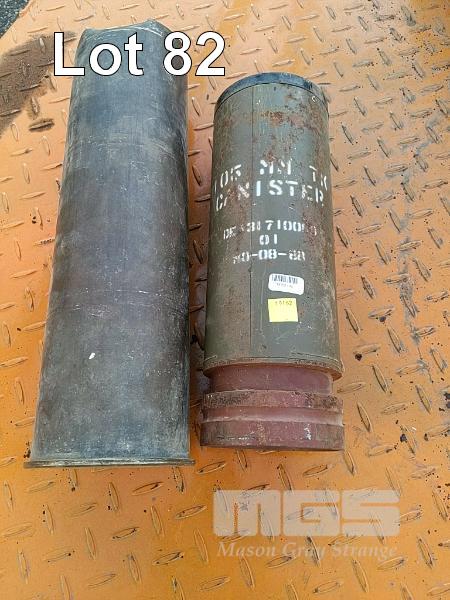 ARTILLERY ROUND "105 MM TK CANISTER" AND CARTRIDGE CASE "105MM M14 6-MF- 83". FIRED/INERT