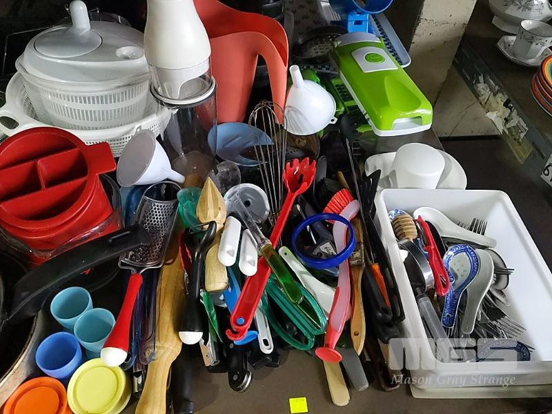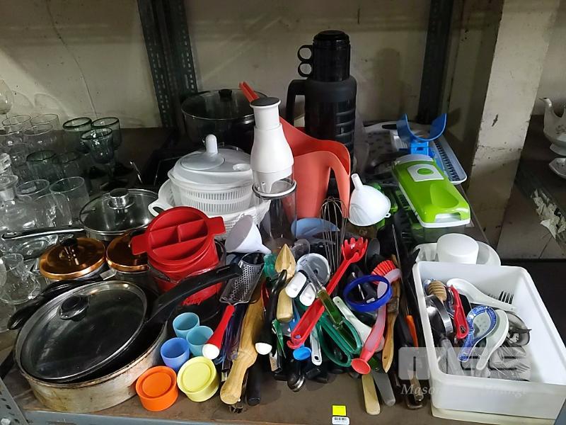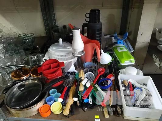 COOKWARE, PLASTIC-WARE, CUTLERY AND UTENSILS (1 x BAY)