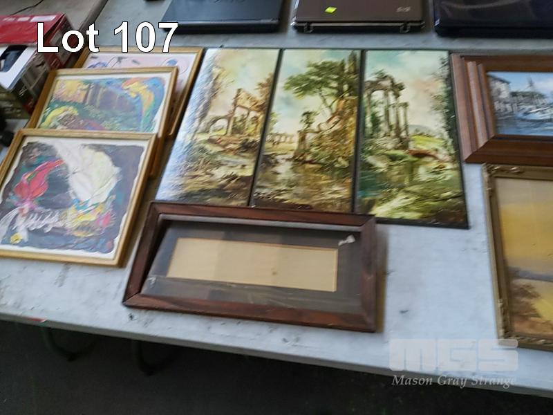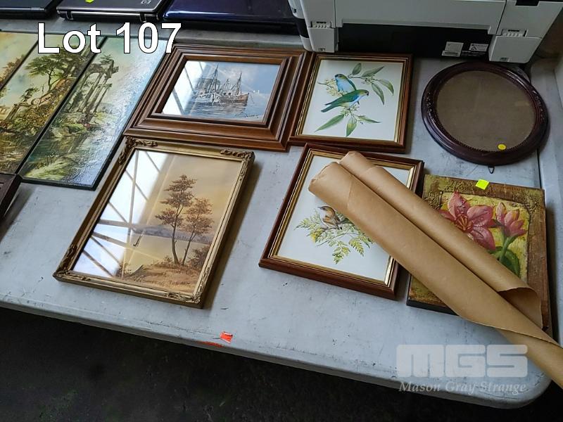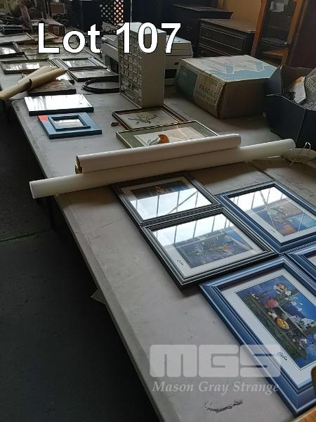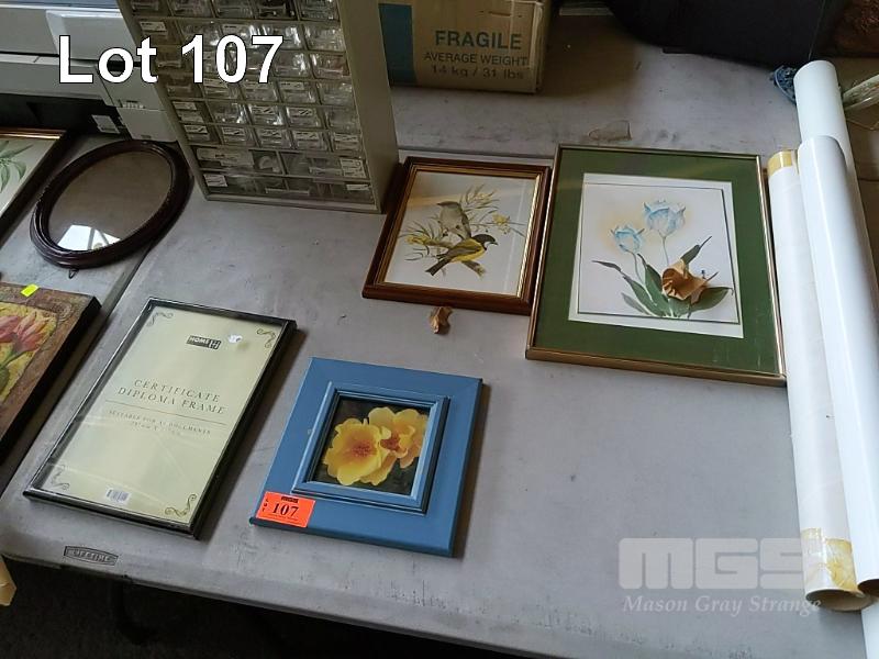 25 x PICTURE FRAMES & PRINTS AND PARTS DRAWERS OF PICTURE HOOKS