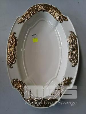 SERVING PLATTER, HAND PAINTED GOLD LEAF