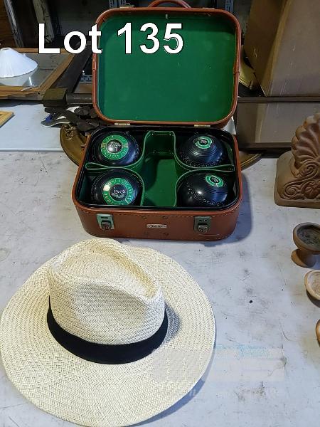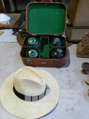 4 x LAWN BOWLS, "SAVOY" CASE AND SUN HAT
