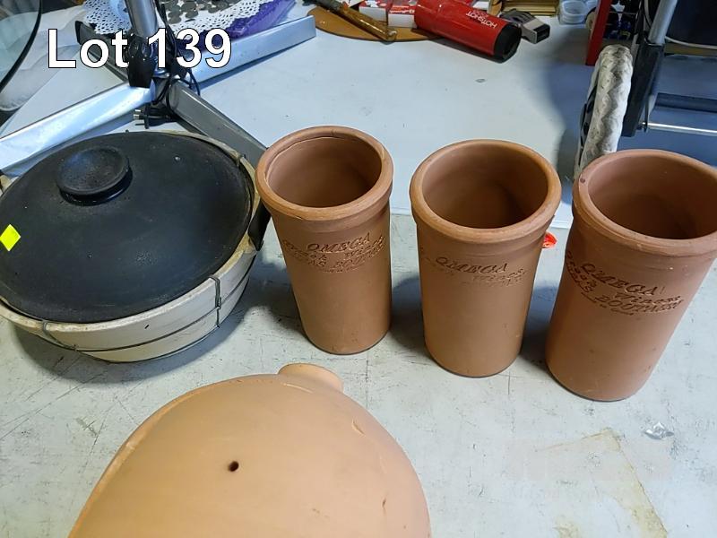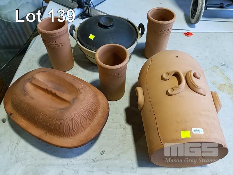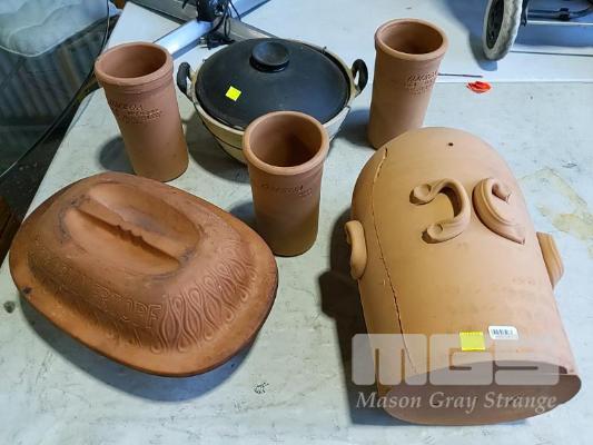 SCHLEMMERTOPF CLAY BAKER, 3 x TERRACOTTA WINE COOLERS, EARTHENWARE COOKING POT AND EARTHENWEAR ROASTING POT