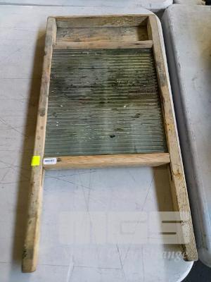 VINTAGE WOODEN WASHBOARD. GLASS GRATE.