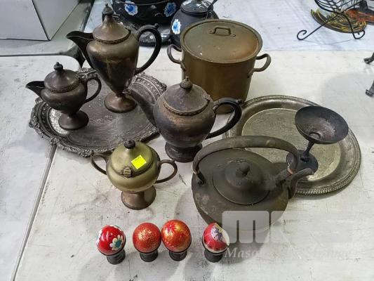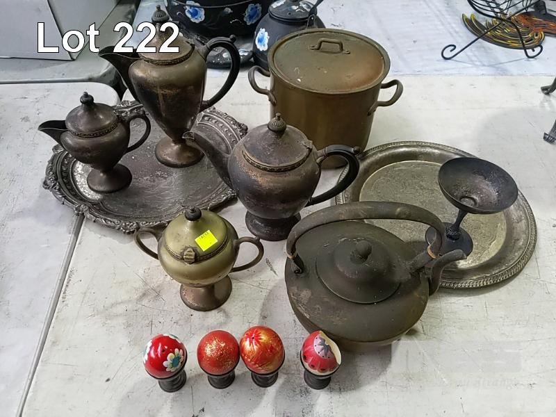 "DU BARRY" SILVER PLATE TEA POTS. COPPERWARE KETTLE, COPPERWARE POT, EPNS TRAYS, EPNS EGG CUPS AND EPNS TRAYS