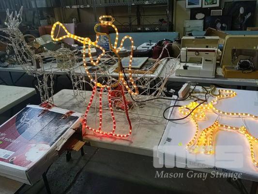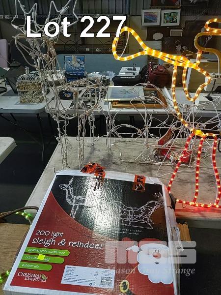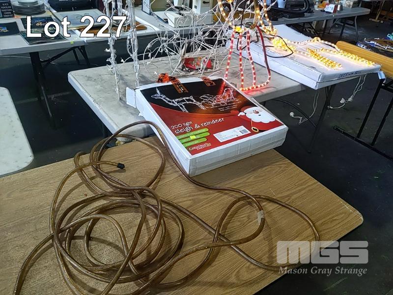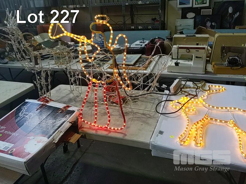 REINDEER, ANGEL & SLEIGH LIT OUTDOOR CHRISTMAS DISPLAYS (NO TRANSFORMER FOR SLEIGH). 5M STRING LIGHT (DOES NOT FULLY LIGHT)