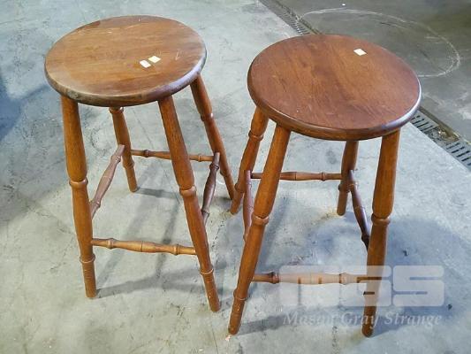 2 x WOODEN BAR STOOLS WITH TURNED LEGS