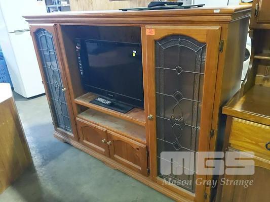 TIMBER TV CABINET WITH LEAD GLASS DOORS