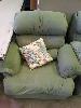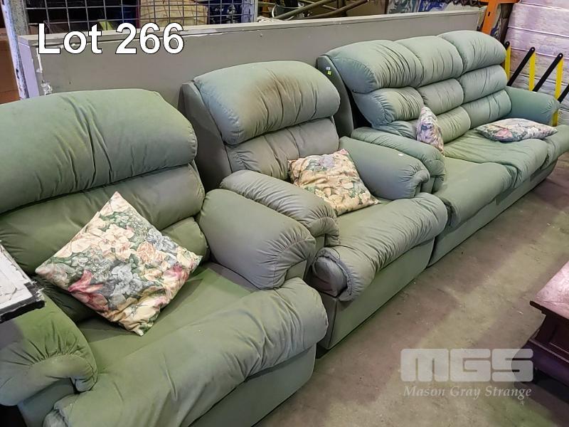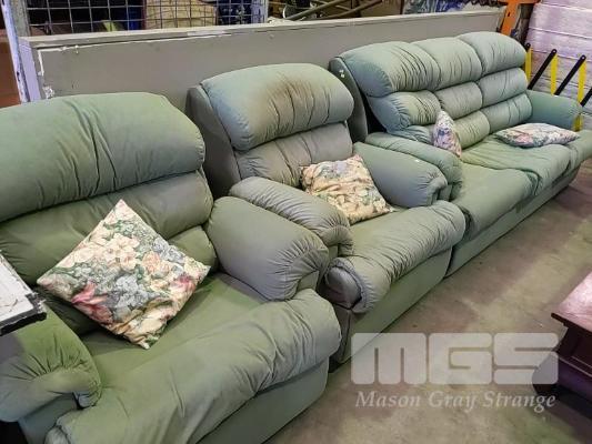 3-SEAT FABRIC LOUNGE CHAIR WITH ROLLED ARMS & BACK AND 2 x MATCHING RECLINERS