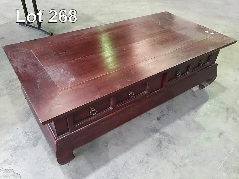 REPRODUCTION MAHOGANY COFFEE TABLE. 4-DRAWERS WITH METAL RING HANDLES