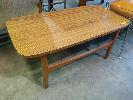 WOOD GRAIN STYLE 1970's TIMBER LAMINATE COFFEE TABLE AND 4 x CONTEMPORANEOUS VINYL & STEEL CHAIRS