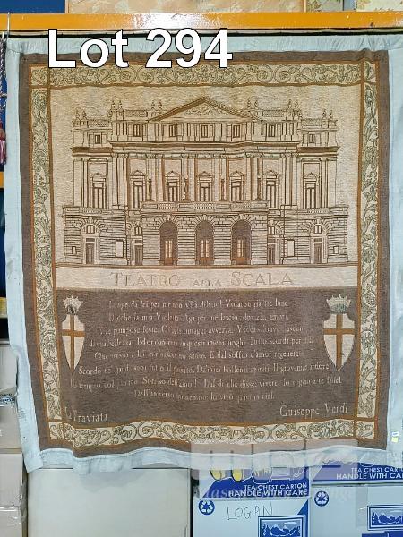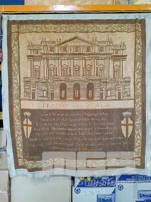 LARGE ARCHITECTURAL WALL HANGING DEPICTING "TEATRO ALLA SCALA" ON BRASS ROD, SPEAR TIPPED.