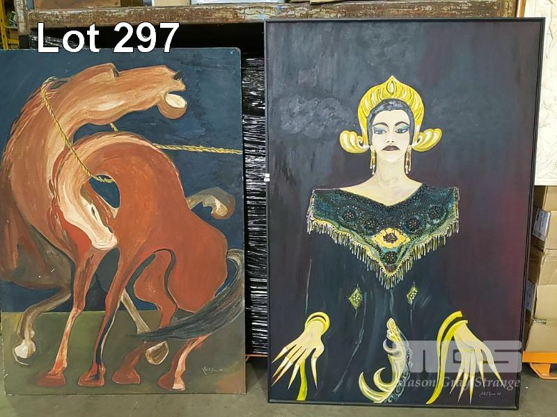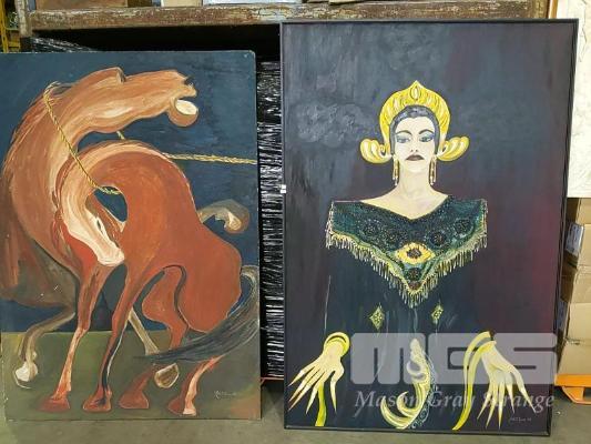 LARGE ORIGINAL ARTWORKS BY "NICK G. PYRROS". "CHINESE PRINCESS" AND HORSES. BOTH 1,200 x 1,800mm APPROX