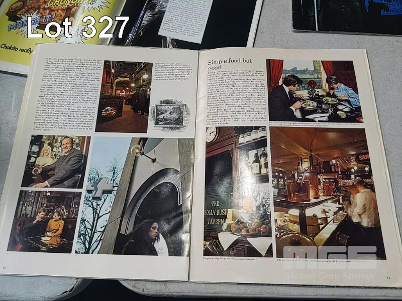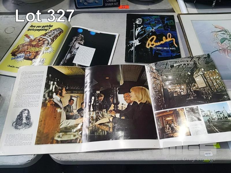 3 x FRAMED PRINTS, ROD STEWART "BLONDES HAVE MORE FUN" WORLD TOUR 1978/79 OFFICIAL PROGRAM. BUDDY "THE BUDDY HOLLY STORY" OFFICIAL PROGRAM AND "THE LONDON PUB" LP RECORD AND EXTENDED COVER DEPICTING LONDON PUBS CIRCA 1960s.