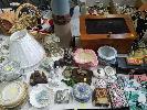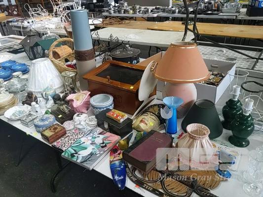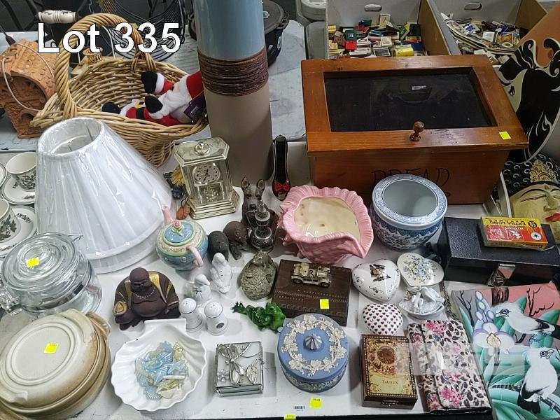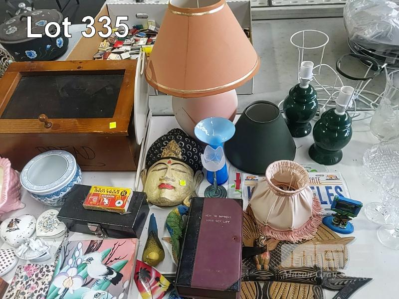 HOMEWARES, FIGURINES, MOMENTOS, LAMP, CANE BASKET ETC