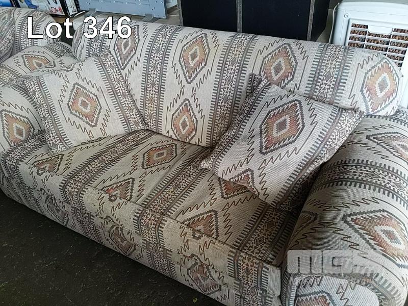 2 x MATCHING 2-SEATER FABRIC ROLLED ARM LOUNGE CHAIRS